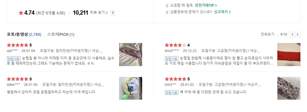 세컨허즈 눈 찜질팩 안대 피로 온찜질 온열 눈건조할때 아이필로우